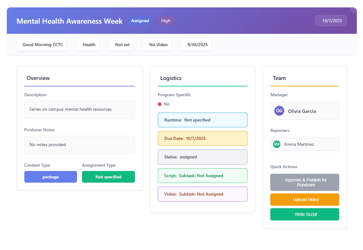 Whether it's the morning announcements, a holiday feature, sports coverage, or a podcast, RundownHQ brings structure, accountability, and creativity into one powerful platform.